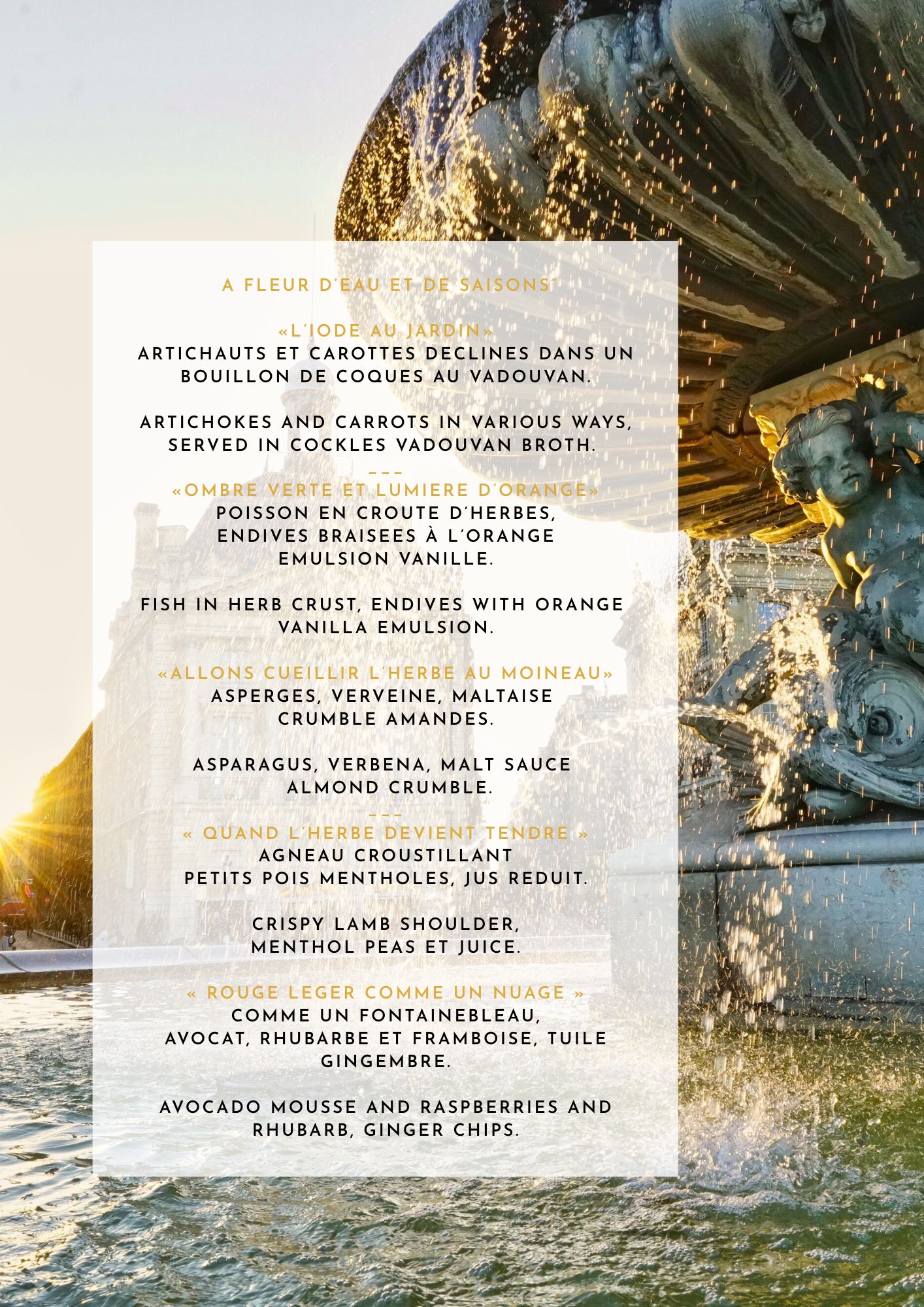 Pour toutes modifications de menu, veuillez le signaler lors de votre réservation sur le site internet.